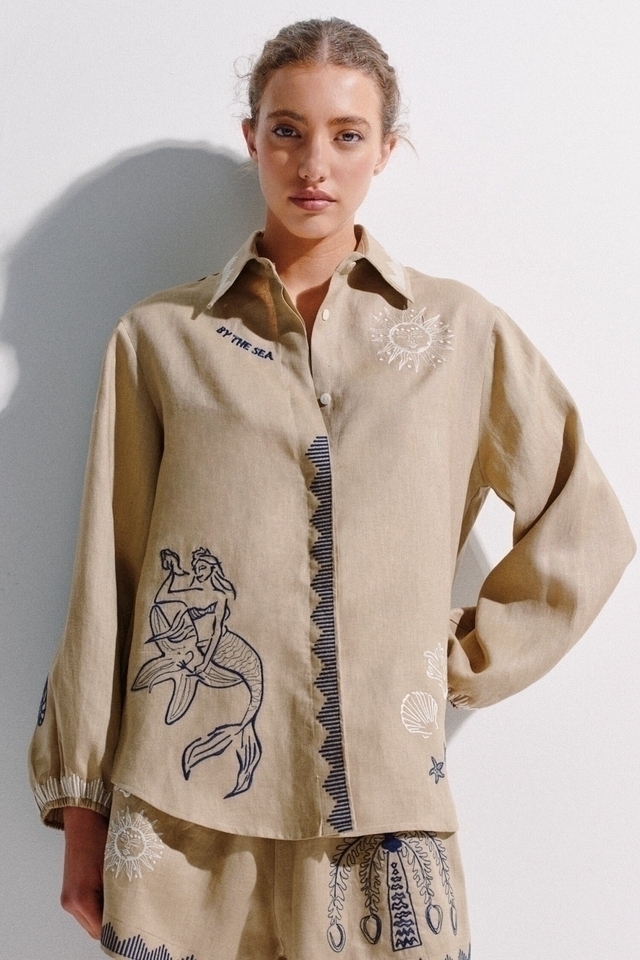 Destaca por sus bordados exclusivos inspirados en la mitología marina, que le dan un toque artesanal y distintivo. Ideal para usar en conjunto con el Short Arrecife.