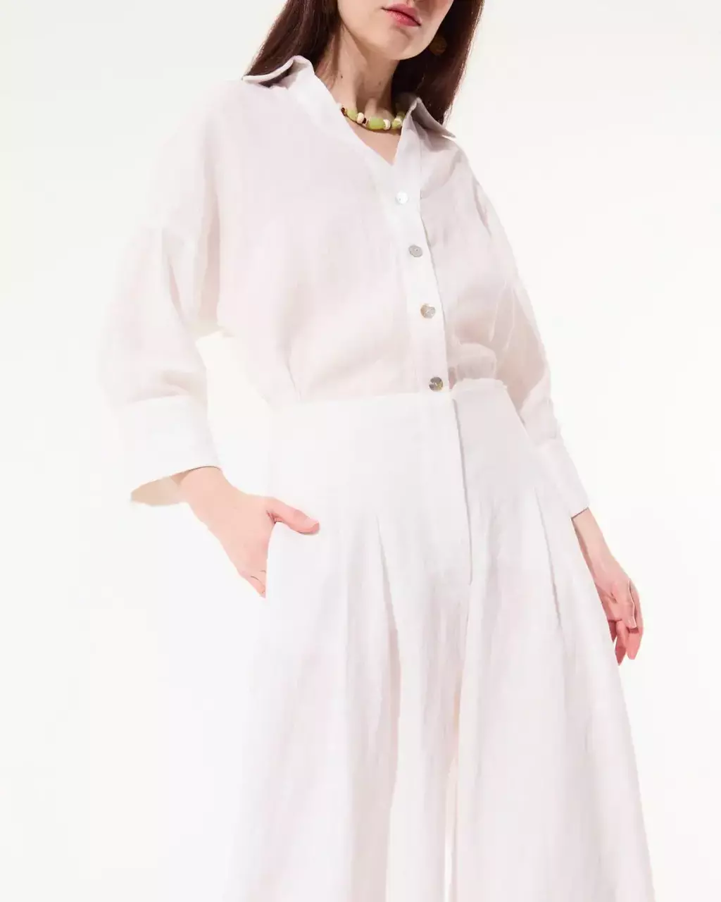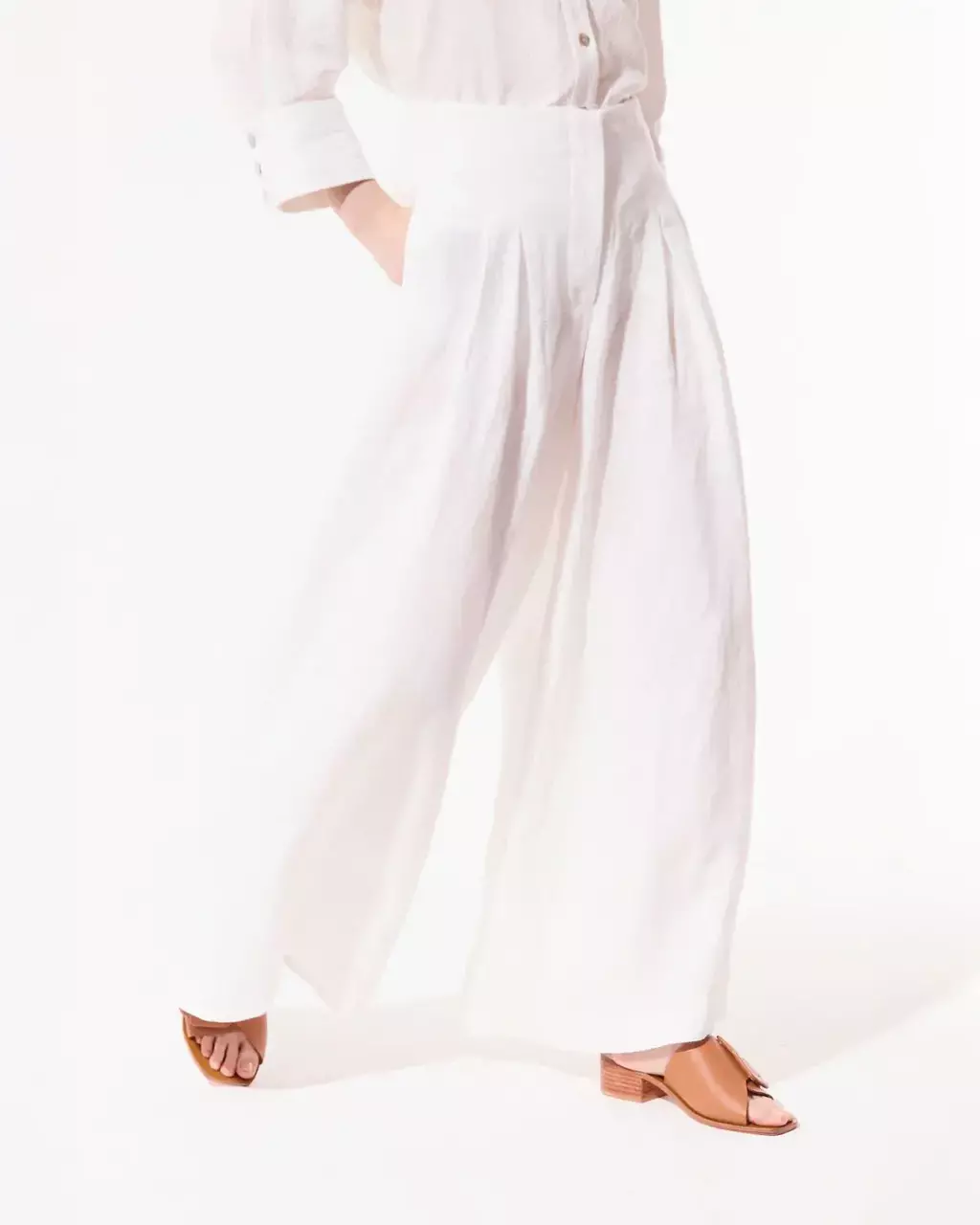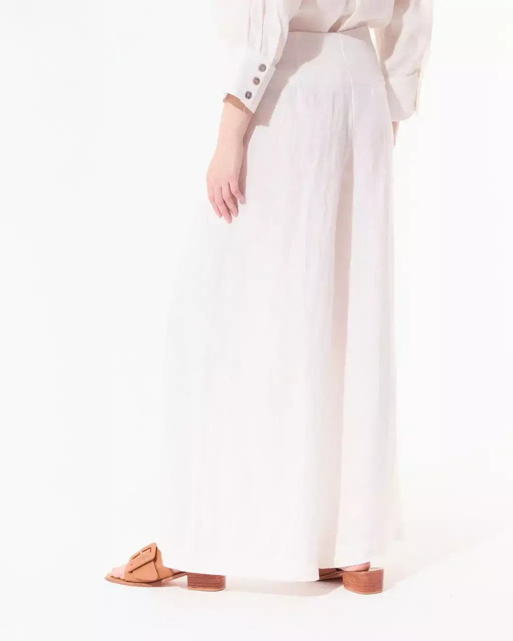 Pantalón wide leg sastrero confeccionado en 100% lino. Tiene dos tablones en el delantero y bolsillos laterales.