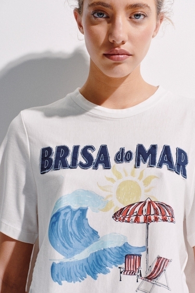 Remera de manga corta y cuello redondo, de calce regular, confeccionada en suave algodón Pima de alta calidad. El diseño se destaca por una estampa en el delantero combinada con bordados que suman textura y un acabado artesanal.